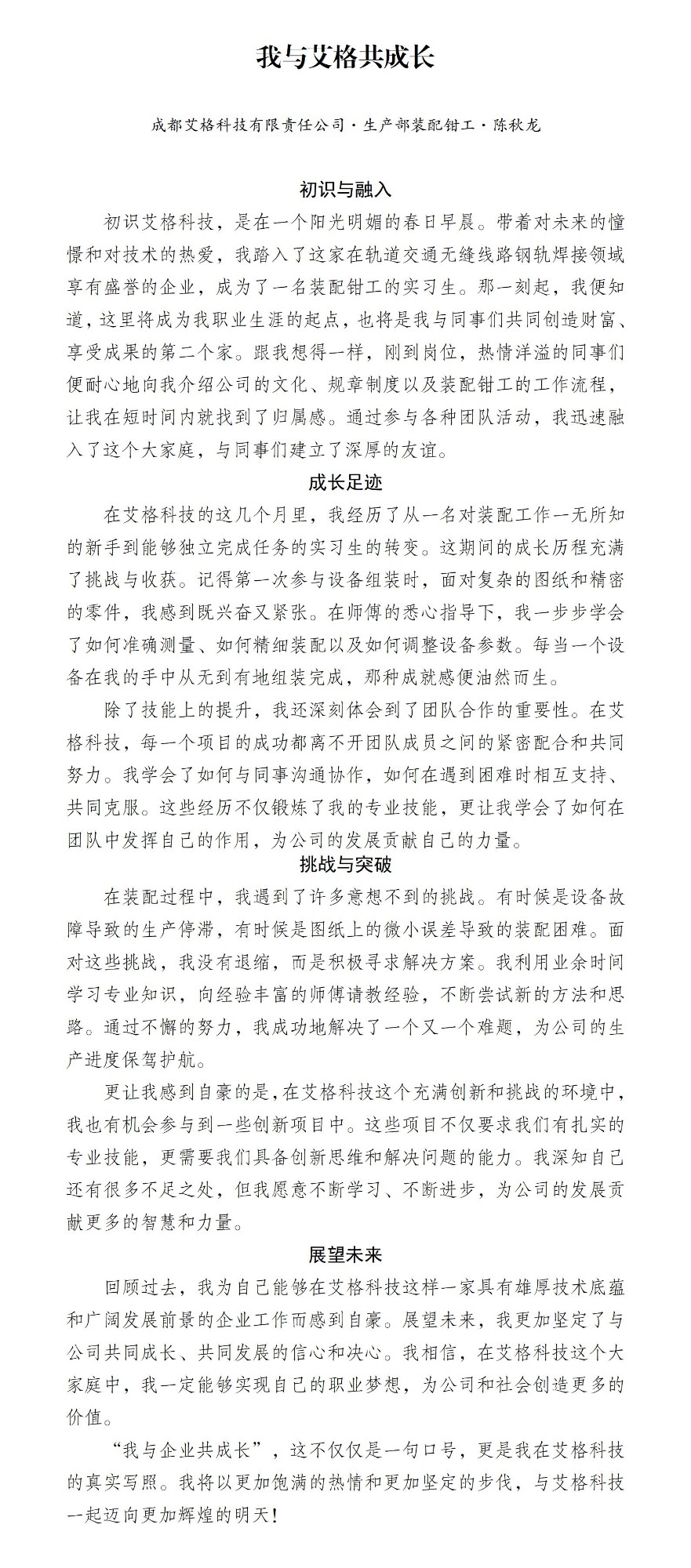 “我與艾格共成長”征文