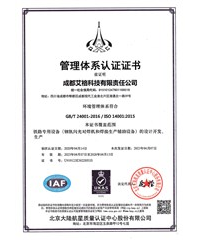 Certificate of Management System Certification ISO14001(Chinese Version)